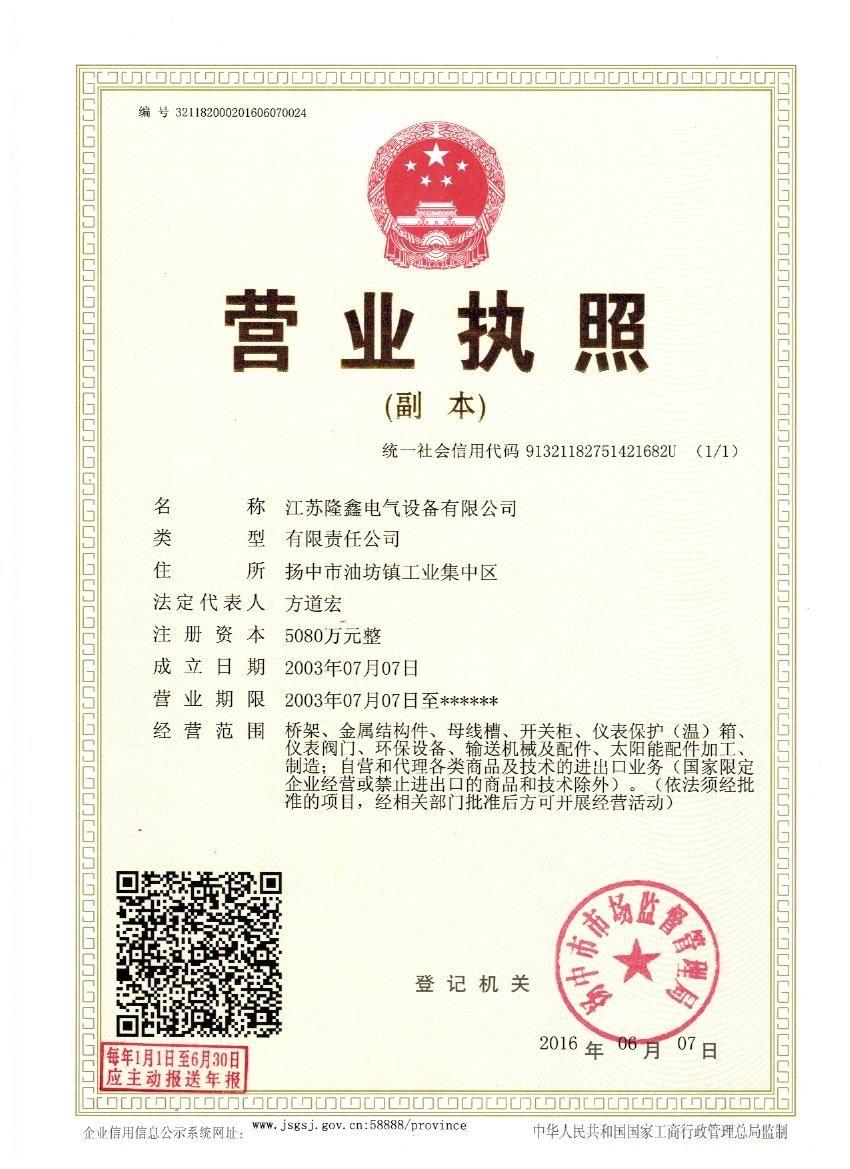 江蘇隆鑫電氣設備有限公司(原揚中市隆鑫電器設備有限公司)位于風景秀麗的江南古城 ---- 鎮江東部揚子江畔,水陸交通便利。 本公司是中石化網絡成員企業,是揚中橋架企業,工業管道閥門、儀表管配件、母線槽、匯線橋架、玻璃鋼制品的專業生產廠家。 我公司一貫以經營以管理為保證、以科技進步為動力,使產品的市場占有率不斷提高,公司正持續(xù)、穩(wěn)步、健康地向前發(fā)展,秉循“創(chuàng)造完美、服務用戶、奉獻社會”的經營觀念,本公司生產的儀表管件及閥門系列產品、母線槽、電纜橋架幾乎覆蓋全國31個省、市、自治區的化工、冶金、交通、輕...